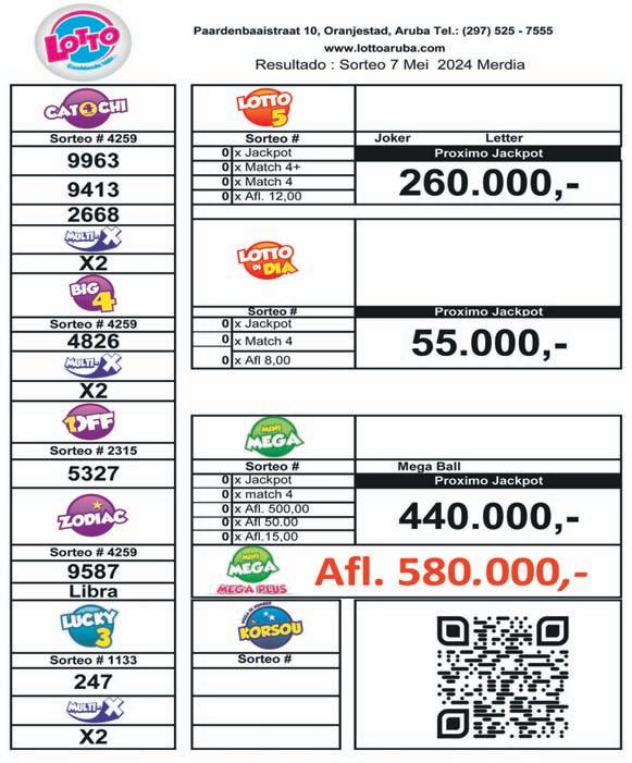 Esunnan cu ta rond di bo lo purba di haci bo feliz. Finansa ta bay bon, dedica na cumpra, bende of inverti. Trabao pisa y laaf, ta algo transitorio. Vigila bo salud, ya cu bo por haya bo algo altera. Number di suerte: 41, 23, 8.