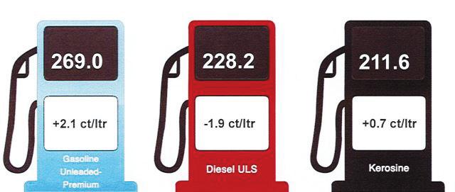 Gasoline unleaded-premium : 269,0 cen p/ltr. (+ 2,1 cen)