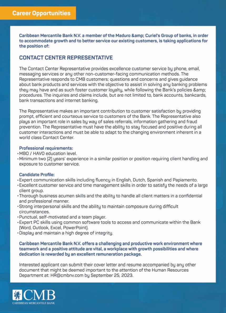 No duda y manda bo carta di motivacion, incluso C.V. dirigi na Directiva di Tienda di Educacion na e-mail: directivatde@gmail.com