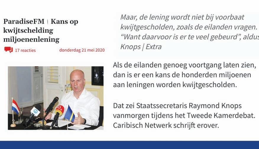 Den un articulo di e ex Secretario di Estado di e tempo ey, Raymond Knops, cu a wordo publica na mei 2020, den su declaracion el a compromete cu si e paisnan den Reino mustra suficiente recuperacion, Hulanda lo por duna dispensacion. Esaki ta un declaracion cu el a duna dia 21 mei 2020 den Parlamento Hulandes. Señor Knops a acopla un dispensacion na reformanan of condicionnan.