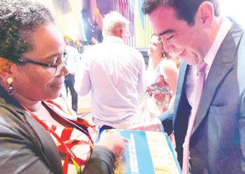 Durante e clausura oficial di e di XXIV Congreso INCOSAI, presidente di Algemene Rekenkamer Aruba a entrega un buki tocante e patrimonio cultural di Aruba na minister Bruno Dantas di Tribunal di Cuentas di Brasil, cu ta