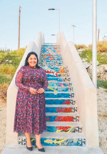 Dialuna atardi Minister di Turismo y Salud Publico tabata den un conferencia di prensa extra ordinario na Rodgers Beach den conexion cu e trabounan cu a keda haci na trapi. Manera ta conoci e trapi a haya un renobacion completo cu a keda entrega na maart di e aña aki. Minister Oduber no a para eynan, e mandatario su idea di comienso tabata pa haci esaki un atraccion pa nos turistanan. Un di mihor idea tabata pa haci obra di arte cu mosaic na e trapi.