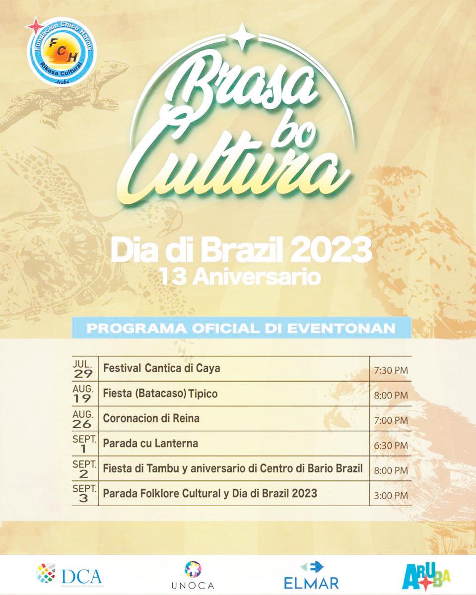 - 3 di september 2023 – 3 or di atardi: Parada Folklore Cultural y Dia di Brazil. E parada lo sali y termina na Centro di Bario Brazil y lo wordo acompaña pa 10 diferente
