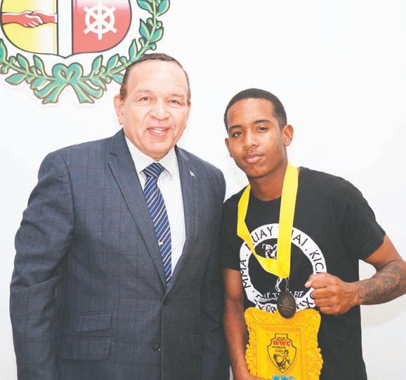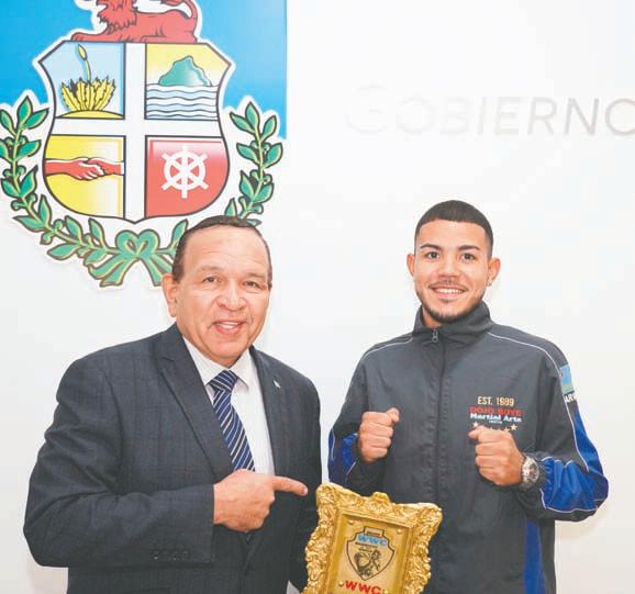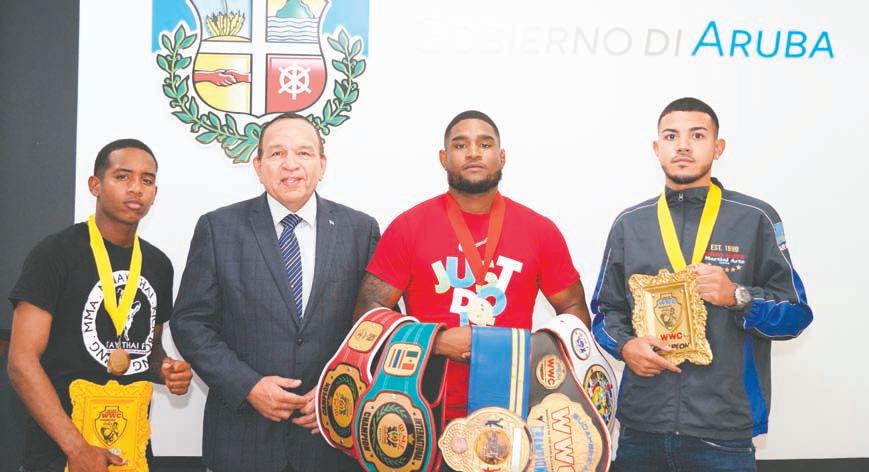 Oranjestad: Siman pasa, den un esfera ameno Minister Endy Croes a ricibi bishita di e atletanan cu a bringa den e campeonato internacional di WWC “Battle of the Grand Champion Warrior of the World Championship” na Quito, Ecuador. Presente tambe e atardi aki tabata presidente di Muay Thai, sra. Rutmila Gonzalez, sr. Stacy Hassell y sr. Roony Boye. Algun siman atras, e atletanan di Aruba a haci un tremendo papel den e campeonato Muay Thai