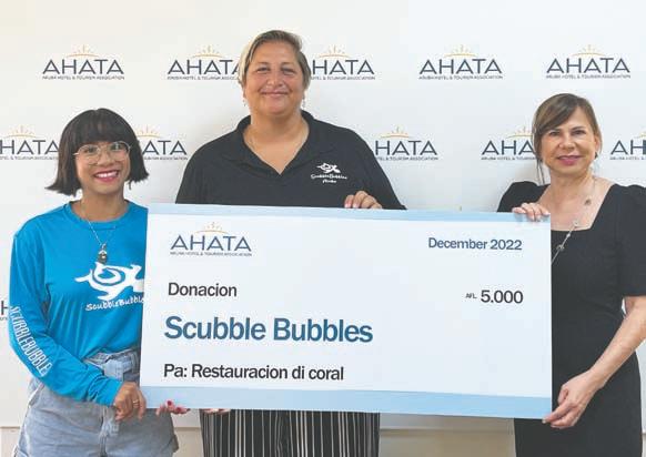 Pa Scubble Bubbles, representantenan Nichole Danser y Arianne Ruey Gara a ricibi un donacion di AHATA pa yuda cu restoracion di coral na Aruba. Aruba su naturalesa maritimo a sufri hopi daño den ultimo decadanan, y Scubble Bubbles ta dedica na restoracion di coral cual ta importante pa nos eco-sistema.