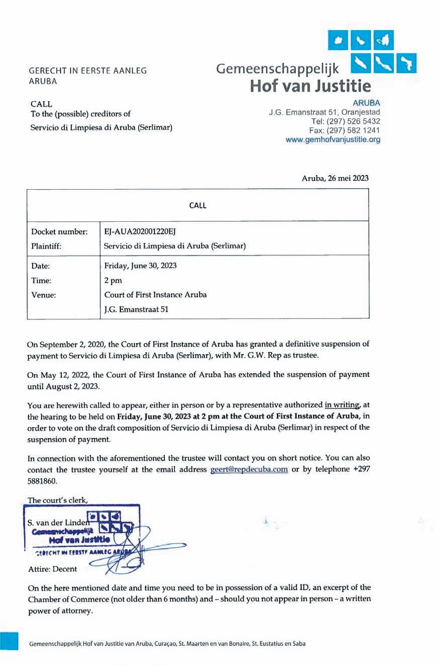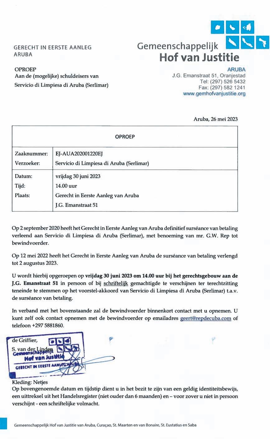 Ademas di esaki, a trata e Doorlichting Rapport cu Sra. Proveyer. Di 24 te cu 31 di mei tin un