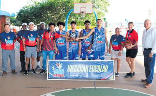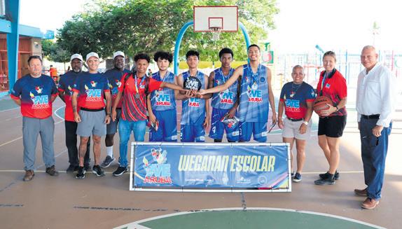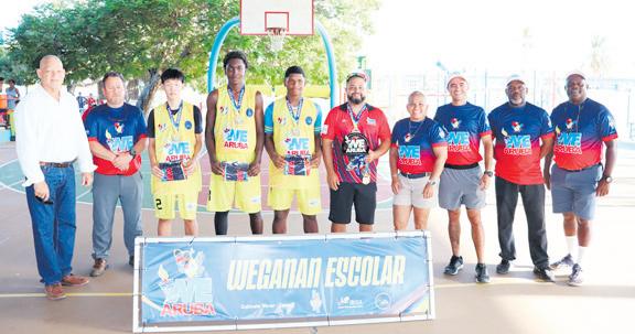 ORANJESTAD: Ayera tardi, a tuma luga final di Basketball C – Mucha Homber na YMCA San Nicolas. E wega final tabata entre Colegio San Augustin y EPB Hato. Colegio San Augustin a titula campeon cu e score 11-7 den Basketball Escolar. EPB Hato a sali sub campeon. Na di tres luga a keda Abraham de Veer School y na di cuater luga La Salle College. Durante e dianan binidero tin mas competencia entre e scolnan preparatorio, scol basico y scol secundario. Minister di Enseñansa y Deporte Endy Croes ta desea tur scol cu ta participando den e competencia di Weganan Escolar 2023