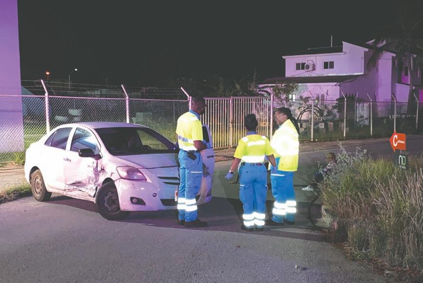 Dialuna anochi den e birada skepri na Sabana Blanco banda di garage centraal y simar un accidente fuerte a keda registra entre un nissan march y un toyota yaris cu a bay den banda contrario completo.