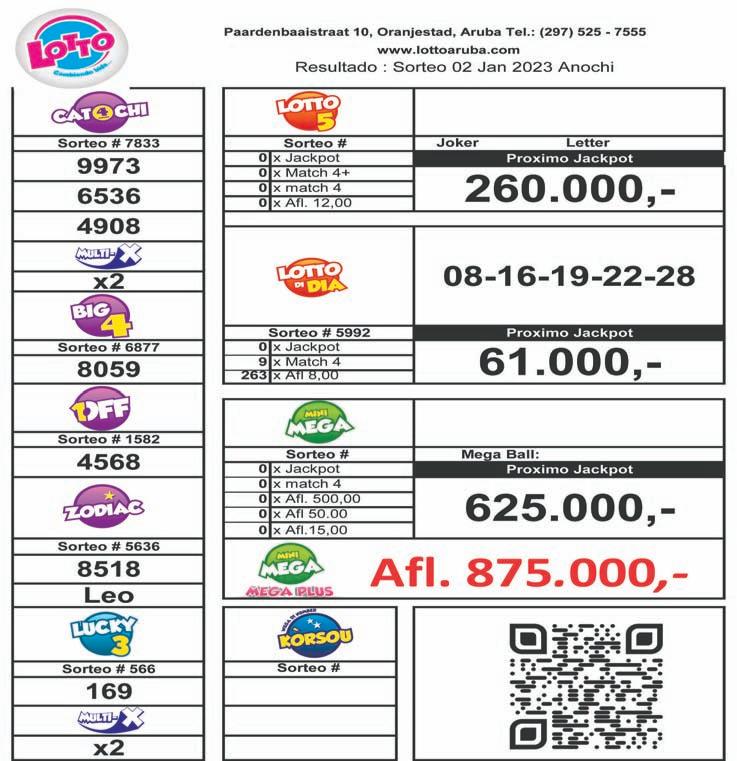 Prome Minister Evelyn WeverCroes ta invita cada ciudadano di Aruba pa den aña 2023 uni pa enfrenta retonan hunto y pa carga e exito hunto. Historia di nos pais a demostra con mas fuerte nos por ta si nos uni. Diferencia di opinion por tey, contal cu semper tin respet. Y irespecto e diferencia di opinion, ora ta trata di Aruba, mas uni nos ta, mas fuerte Aruba ta. Aña 2023 lo trece hopi cambio pa cada un di nos, y nan impacto riba cada un di nos lo ta fuerte. Sinembargo e cambionan aki tambe lo trece cosnan bon pa nos entre otro progreso y bienestar cu nos ciudadanonan merece. Aruba ta un pais bendiciona, y cu fe den Dios, mester ta positivismo cu tin cosnan grandi nos dilanti. Den union y positivismo nos lo supera e retonan cu crusa nos