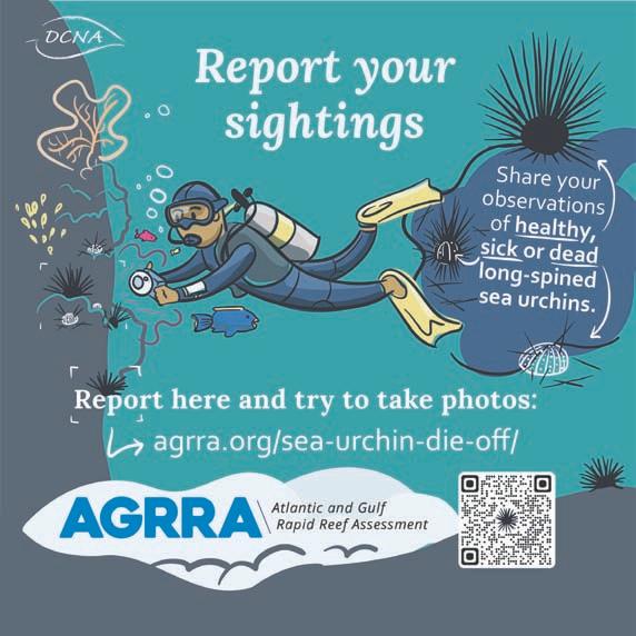 Bo por yuda Ciudadanonan y turistanan tambe por yuda rastrea salud di bushi di lama den Caribe agregando su observacionnan di bushi di lama sano, malo of morto. E informenan ta yuda e managernan di autoridad di parke determinar e causanan y traha riba acercamento di restauracion. Por informa loke bo mira bishitando e sitio web di AGRRA (https://www. agrra.org/sea-urchin-dieoff/) of door di tuma contacto cu bo Organisacion di Maneho di Parke local. Otro conseho pa evita plama e enfermedad: