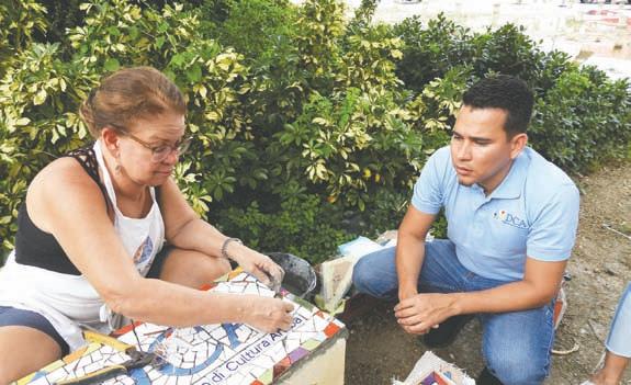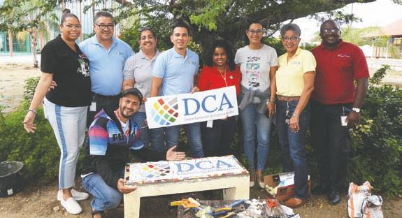 Papiamento. Despues di lunch a clausura e dia cu un tremendo workshop creativo pa medio di ATEMOSA, dirigi pa señora Enrita Werleman cu sosten di su ruman muhe señora Dolores Machado. Tur personal di DCA por a traha riba e logo nobo di DCA den forma di mosaic, na unda na final mester a pega esaki riba un banki di cement, cu lo ta bay ta parti di nos proyecto pa futuro. Sigur un experiencia unico cu a pone e personal di DCA den mas animo pa sigui traha den team.