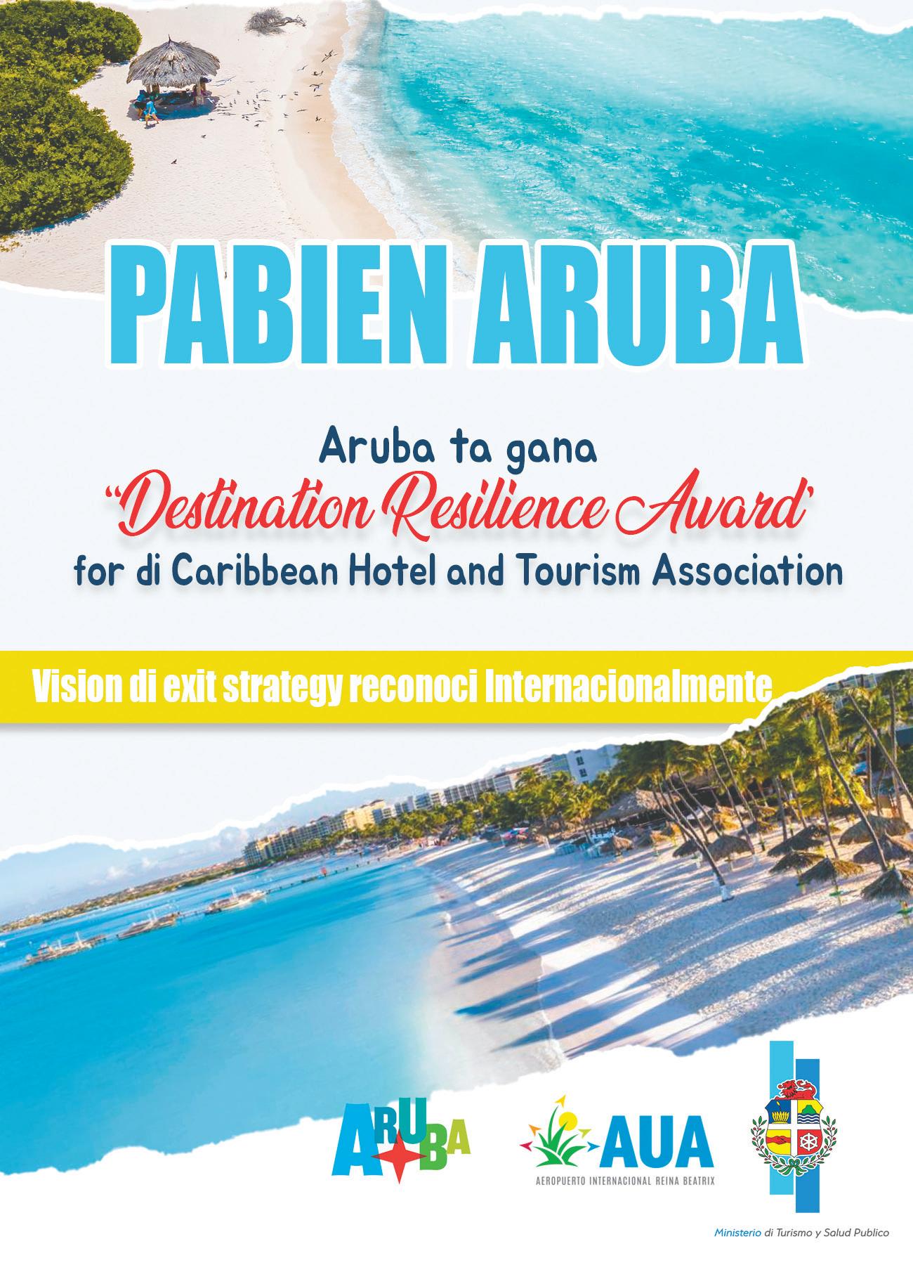 Dialuna 3 di October, un biaha mas Aruba ta resalta den un logro hopi importante pa e maneho y vision di exit strategy y ta wordo reconoci internacionalmente. Aruba a gana e premio di ‘Destination Resilience Award’ for di Caribbean Hotel and Tourism Association (CHTA). Esaki ta e prome biaha cu e premio aki ta wordo otorga.