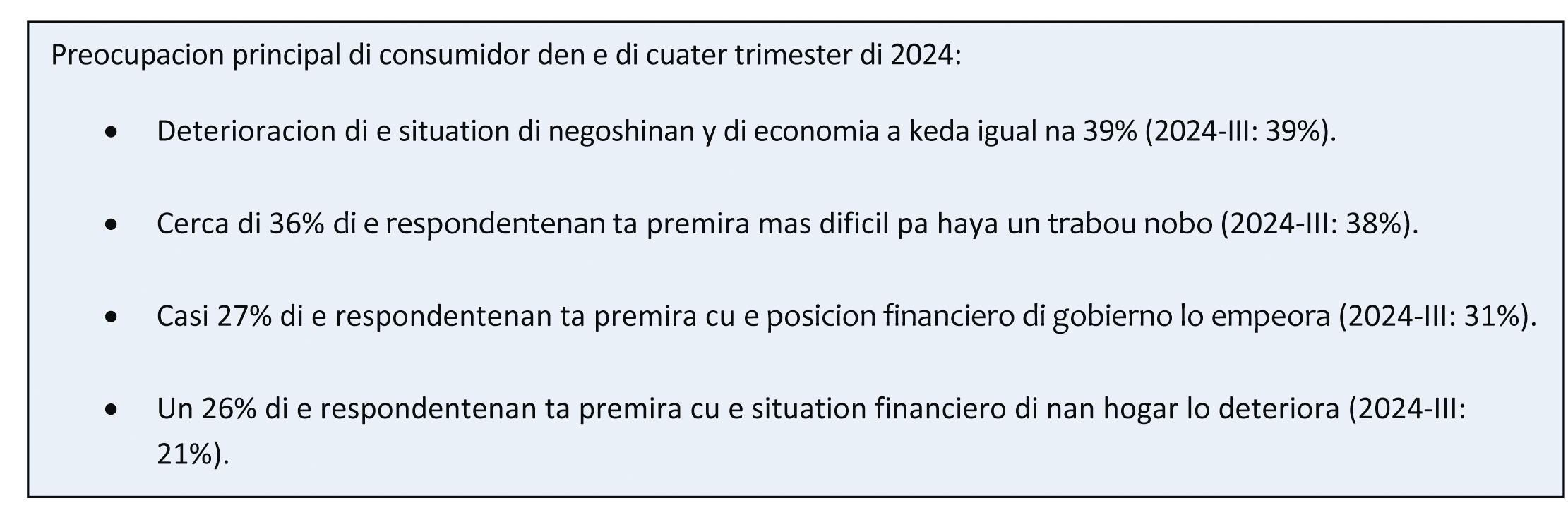 E Indice di Confiansa di Consumidor a baha den e di cuater trimester di 2024, YA CONSUMIDORNAN