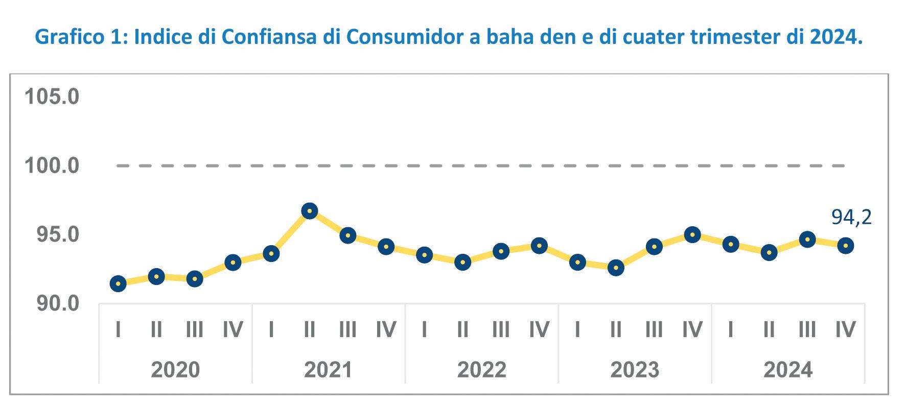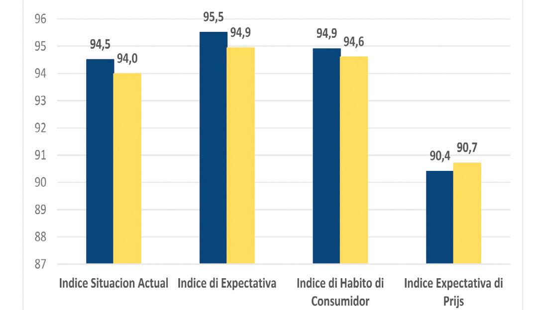 Consumidornan tabata mas pesimista, mirando cu e Indice di Confiansa di Consumidor a baha cu 0,5 punto di indice te na 94,2 den e di cuater trimester di 2024 (mira Grafico 1) .