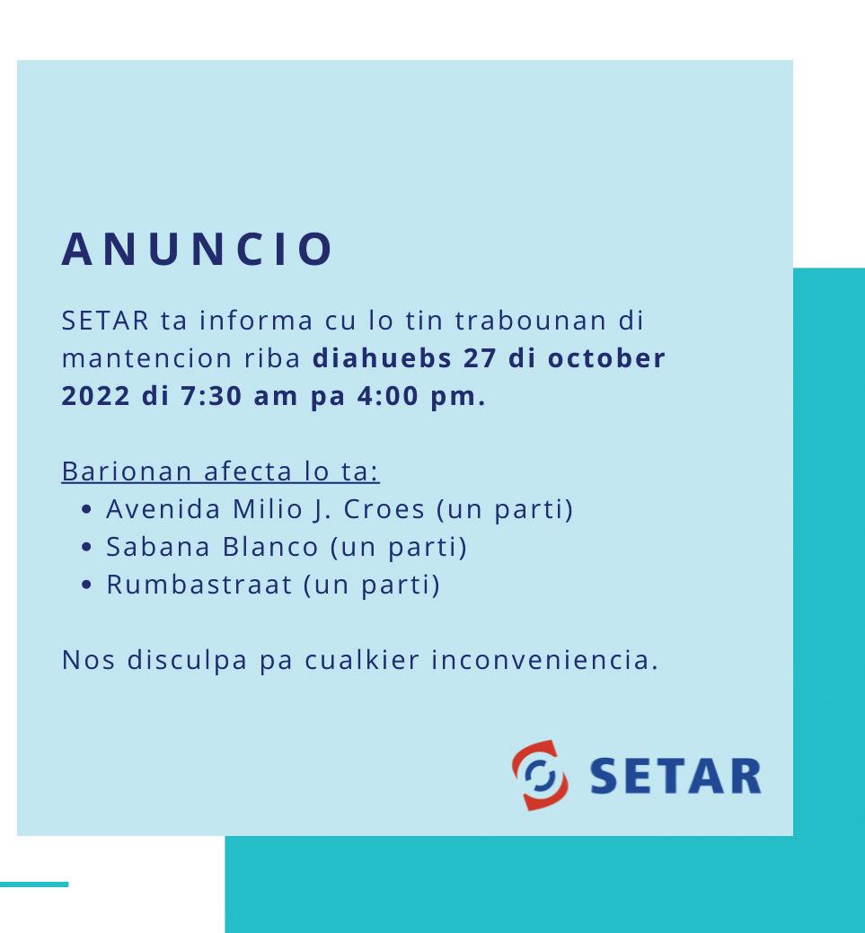 Nos ta tuma e oportunidad aki pa haci un invitacion pa 3 Santo Sacrificio di Misa na misa Inmaculada Concepcion na Sta. Cruz: Diaranson 26 di october pa 7or di anochi Diasabra 29 di october pa 7or di anochi y Dialuna 31 di october pa 7or di anochi.