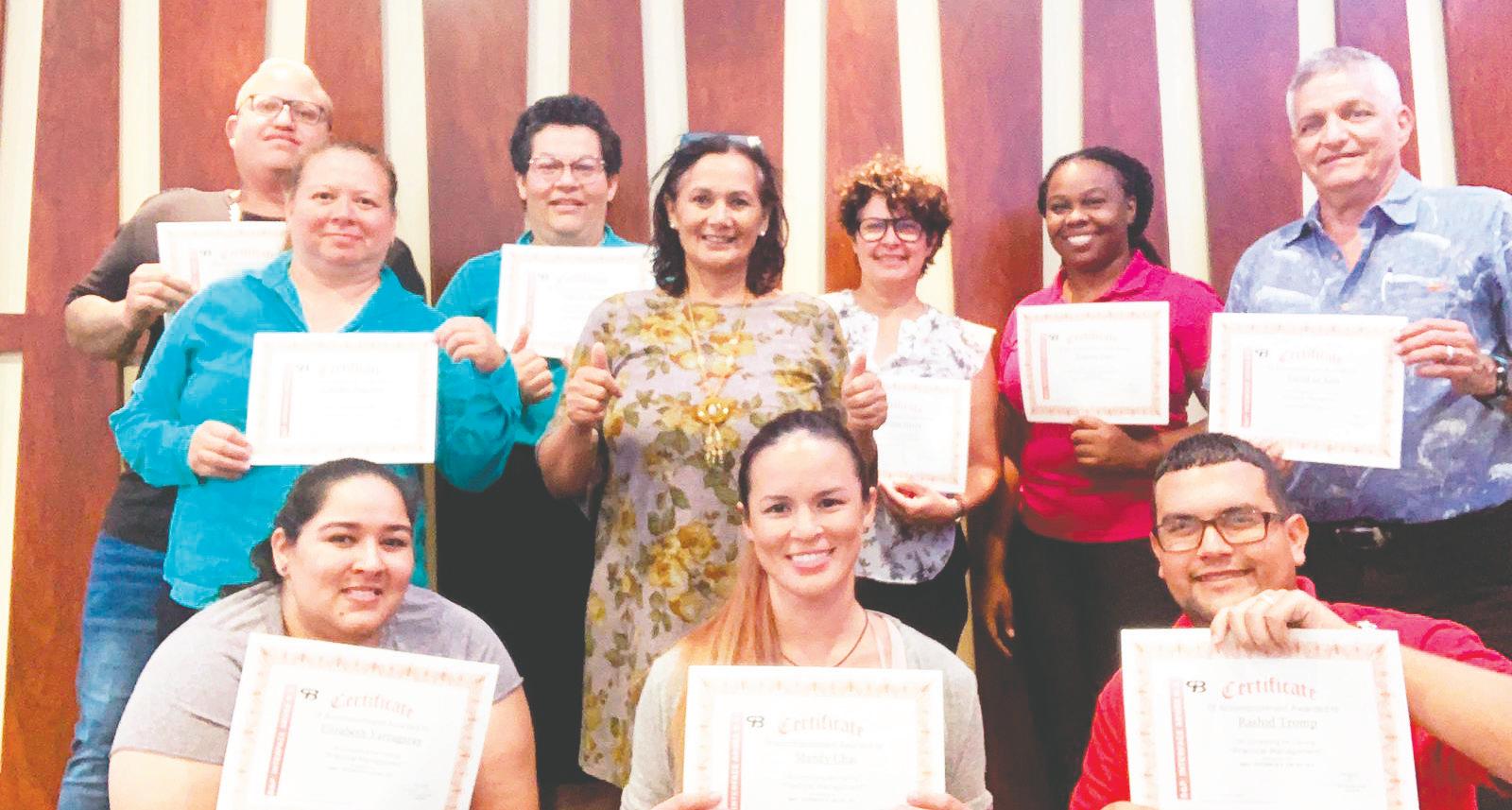 Esnan cu a ricibi un certificado ta: Jennifer Caminata RosalesKelly, Yvanise Lake, Elizabeth Yarzagaray, Rashid Tromp, Eldrith Wever, Lourdes Noguera, David de Kort, Sharline Hayes, Ashley Rodriguez, Clarette Quandus, Jennifer Roga, Soraya Britten, Lisbeth Mora, Nathalie da Costa, Desiree Nicolaas, Roselenn Croes, Shareen J. Cid Cabrera, Kathleen Kelly, Geneviève Melaria y Sharis Anais Illidge. Un palabra di felicitacion ta bai na tur cu a ricibi nan certificado.