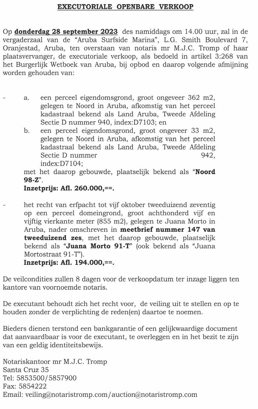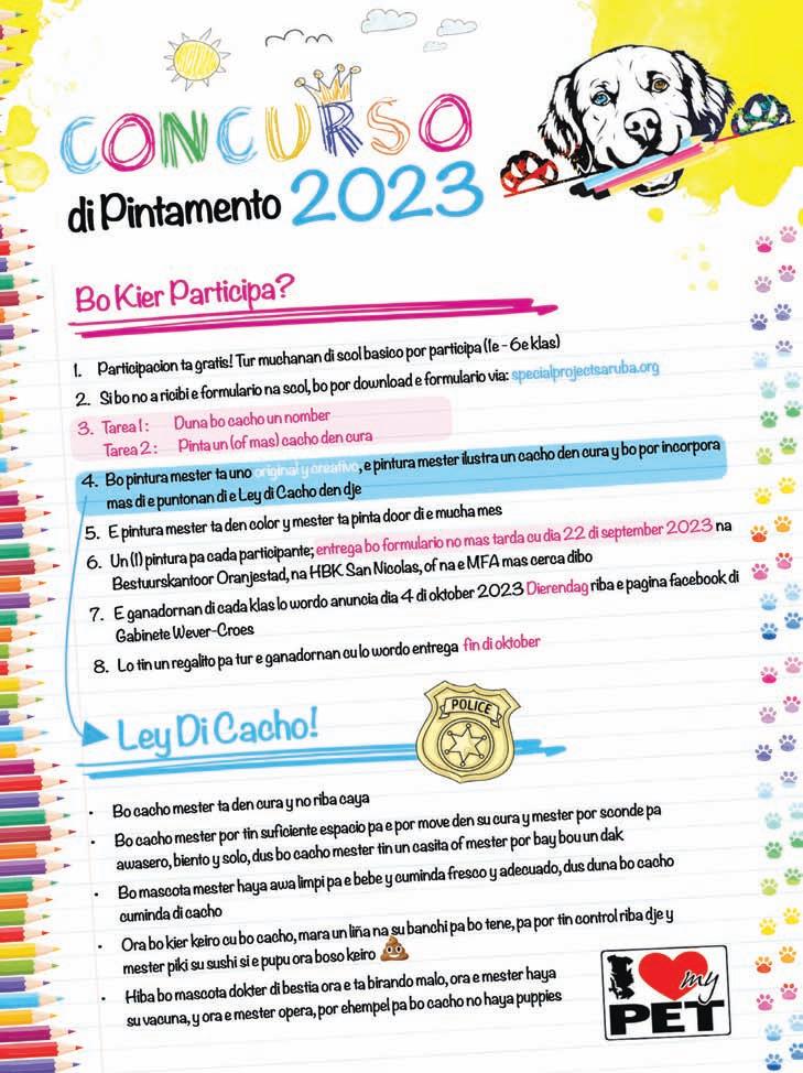cuaresma na april. Esaki lo duna e contratista cu ta bay ehecuta e trabounan, suficiente tempo pa haci e bestelling di materialnan necesario di afo pa evita cu esaki por ta cuasante di retrasdo di e proyecto. E destaho publico lo tuma lugar día 27 di oktober 2023.