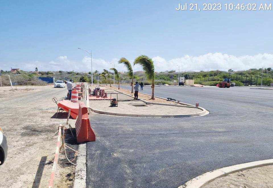 Asfaltamento a keda cla y awor lo bay caba cu e trabounan di klinker e trottoirnan.