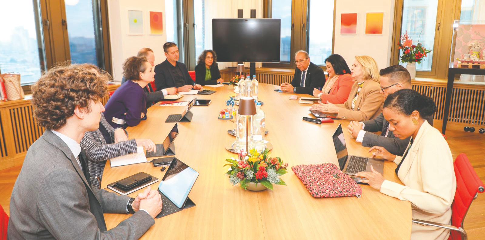 Prome Minister Evelyn Wever - Croes conhuntamente cu Minister Xiomara Maduro, Minister Geoffrey Wever y Minister Glenbert Croes, a reuni cu Minister encarga cu clima na Hulanda, Minister Rob Jetten. Durante di e reunion a trata e tema di un conferencia di clima den Caribe cu lo wordo organisa otro aña maart na Aruba.