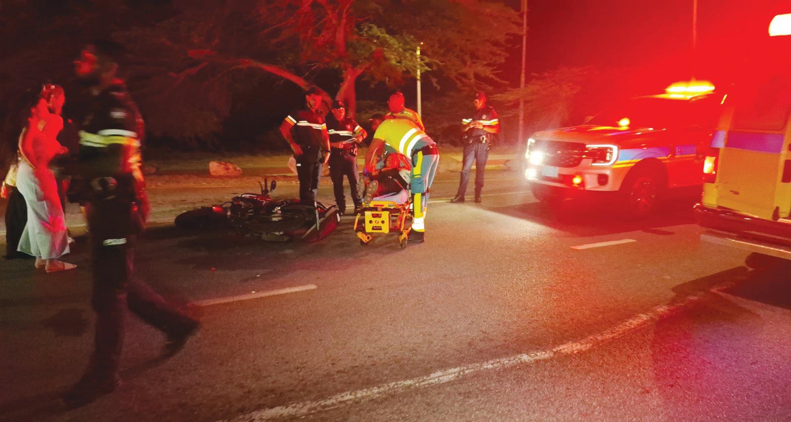 Diahuebs anochi a drenta informe di un accidente cu hende herida dilanti di Blue Residences, mesora a dirigi tanto polis como ambulans na e sitio. Na yegada di e patruya a bin compronde cu aki ta trata di un motociclista femenino cu mester a hala pa un auto y pa no dal e