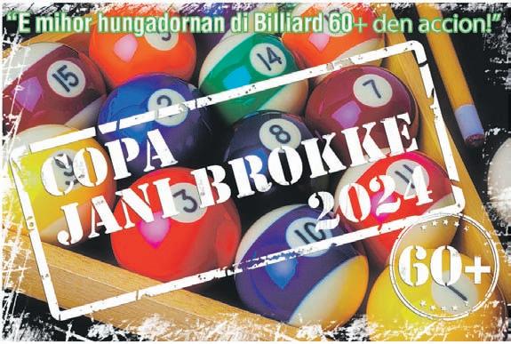 Tanki Leendert - Shonnan, despues di dos diasabra di torneo intenso pa “separate the boys from the men”, e gran torneo di biyar bola 8 “Copa Jani Brokke” 60+ lo yega su gran final diasabra awor, 31 di augustus, cuminsando pa 6:00 di atardi. Mescos cu e dos diasabranan anterior, e gran final lo tuma lugar n’e palacio di biyar aya na Tanki Leendert. Diasabra ultimo tabata tin un paar di wega pa determina ken lo bay final den winner’s round, mientras cu den loser’s round tabata tin un cantidad grandi di wega pa determina kendenan lo hunga e final di loser’s round diasabra awor, pa asina bay enfrenta nada menos cu Gino “Beton” Geerman na final, kende un biaha mas a logra di yega te na final.