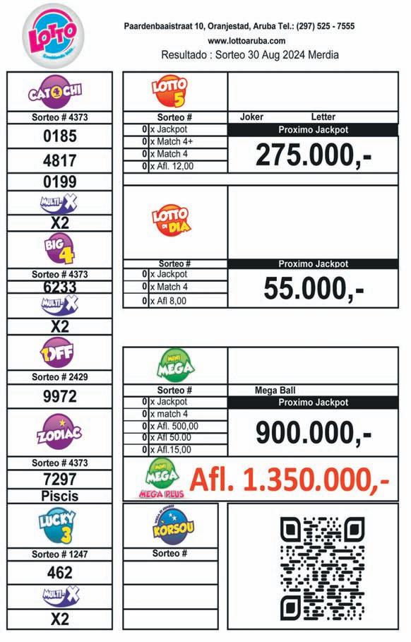 Cuminsando Diahuebs 5 september te cu 13 september 2024 pa 5.45 di atardi, cu excepción di diadomingo 8 september 2024 pa 4.45 di atardi.