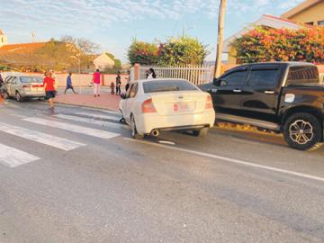 Diabierna mainta a drenta informe di un accidente na e crusada di Sero Pita, mesora a dirigi un patruya na e sitio. Na yegada di e patruya a bin compronde cu aki ta trata di un accidente pa falta di preferencia unda e dama chauffeur di e Hyundai Accent a bira dilanti e dama chauffeur di e Toyota PriusC cu tabata sigi stret. Afortunadamente ningun hende a resulta herida.