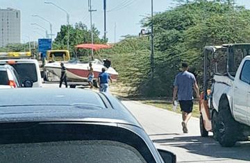 yegada di e patruya a bin compronde cu un pick-up lastrando un boto na dado momento ora di brake di un manera of otro esaki a los y a bay dal duro tras di e pick-up causa hopi daño y despues bay para meymey di caminda. Afortunadamente ningun hende a resulta herida.