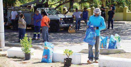 mr. Wendrick Cicilia, habitante di Pos Chikito, a bishita e bario y percura pa un limpiesa completo den e casnan social.