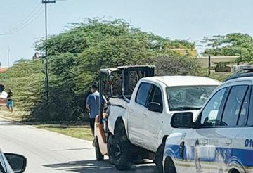 Polis ta yega y a topa cu un pickup color blanco marca BAW. E auto tawata ariba
