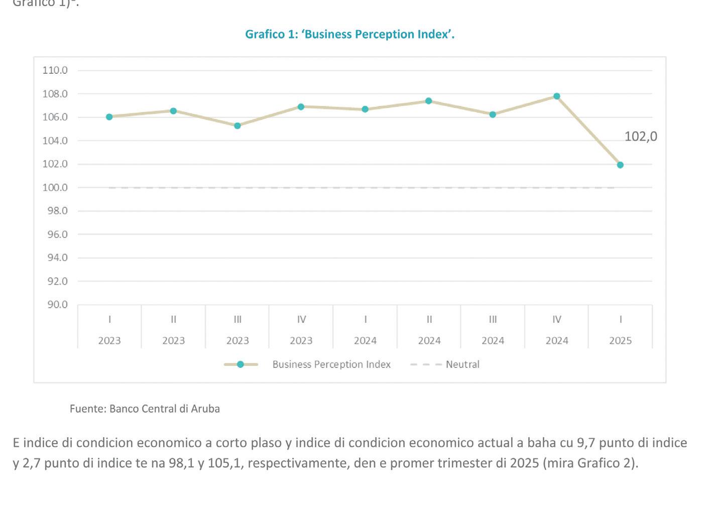 Banco Central di Aruba (BCA) a conclui e encuesta di percepcion di negoshi pa e promer trimester di 2025. E encuesta di percepcion di negoshi ta evalua e percepcion economico di e negoshinan local. E asina yama ‘Business Perception Index’, cu ta consisti di e indicenan