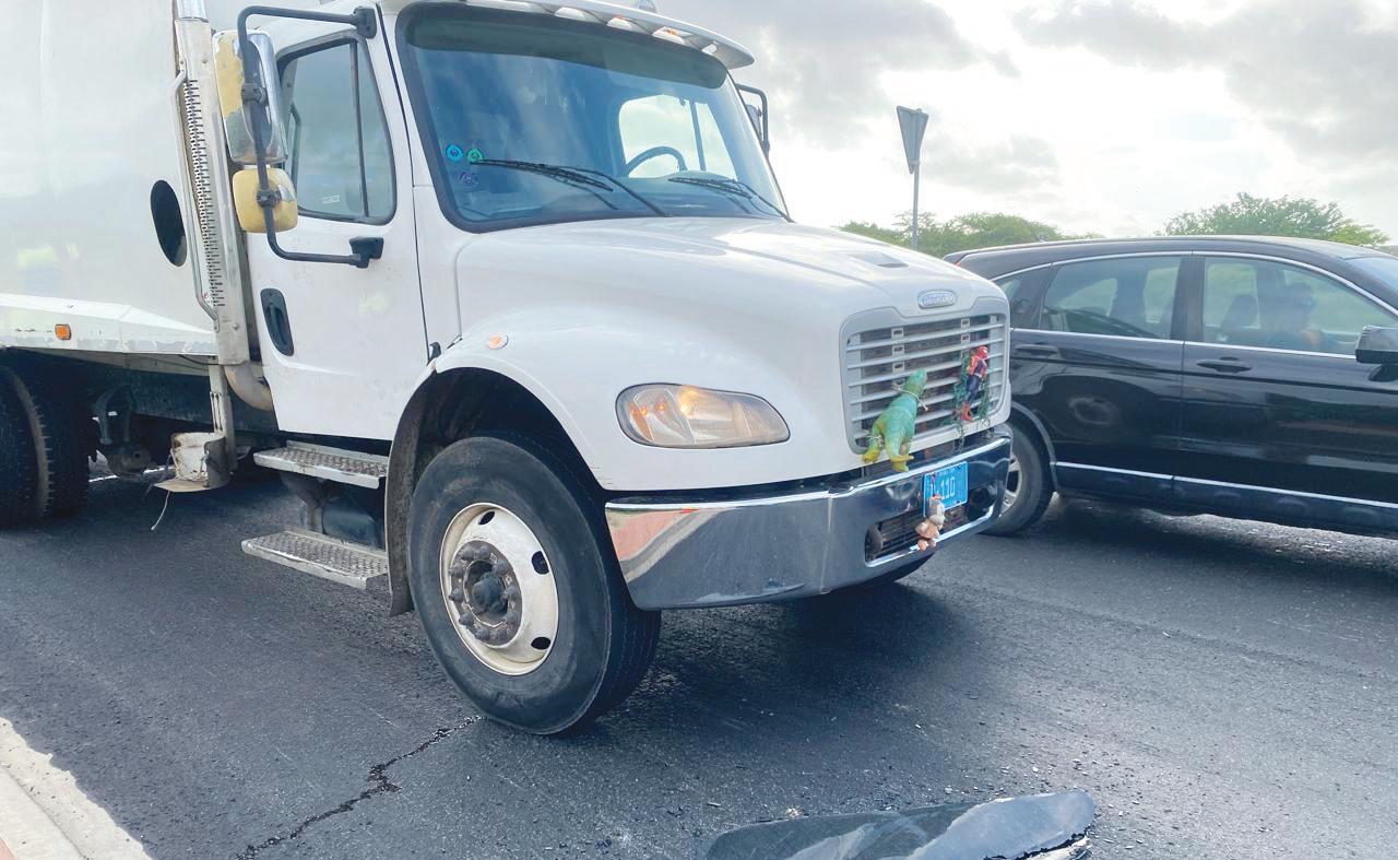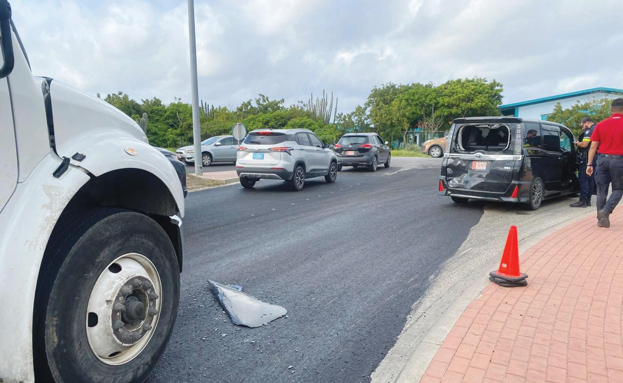 Na yegada di e patruya a bin compronde cu aki ta trata di un accidente entre un truck di sushi y un Toyota Voxy unda e chauffeur di e truck a bay dal tras di e auto.