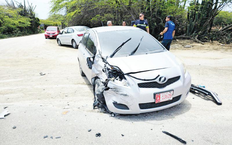 Polis ta yega y ta topa cu e dos autonan, un Toyota Vitz y un Ford suv. E dama chauffeur di e Vitz ta esun cu a resulta herida y mester a ricibi atencion medico.