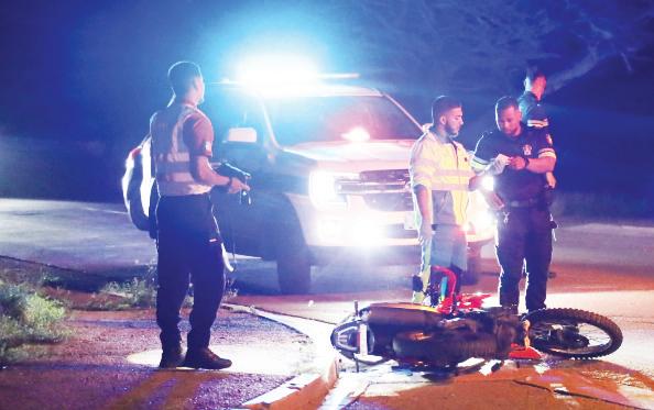 Polis a yega algun rato despues y ta mustra den e direccion cu e motociclista a cay su so.