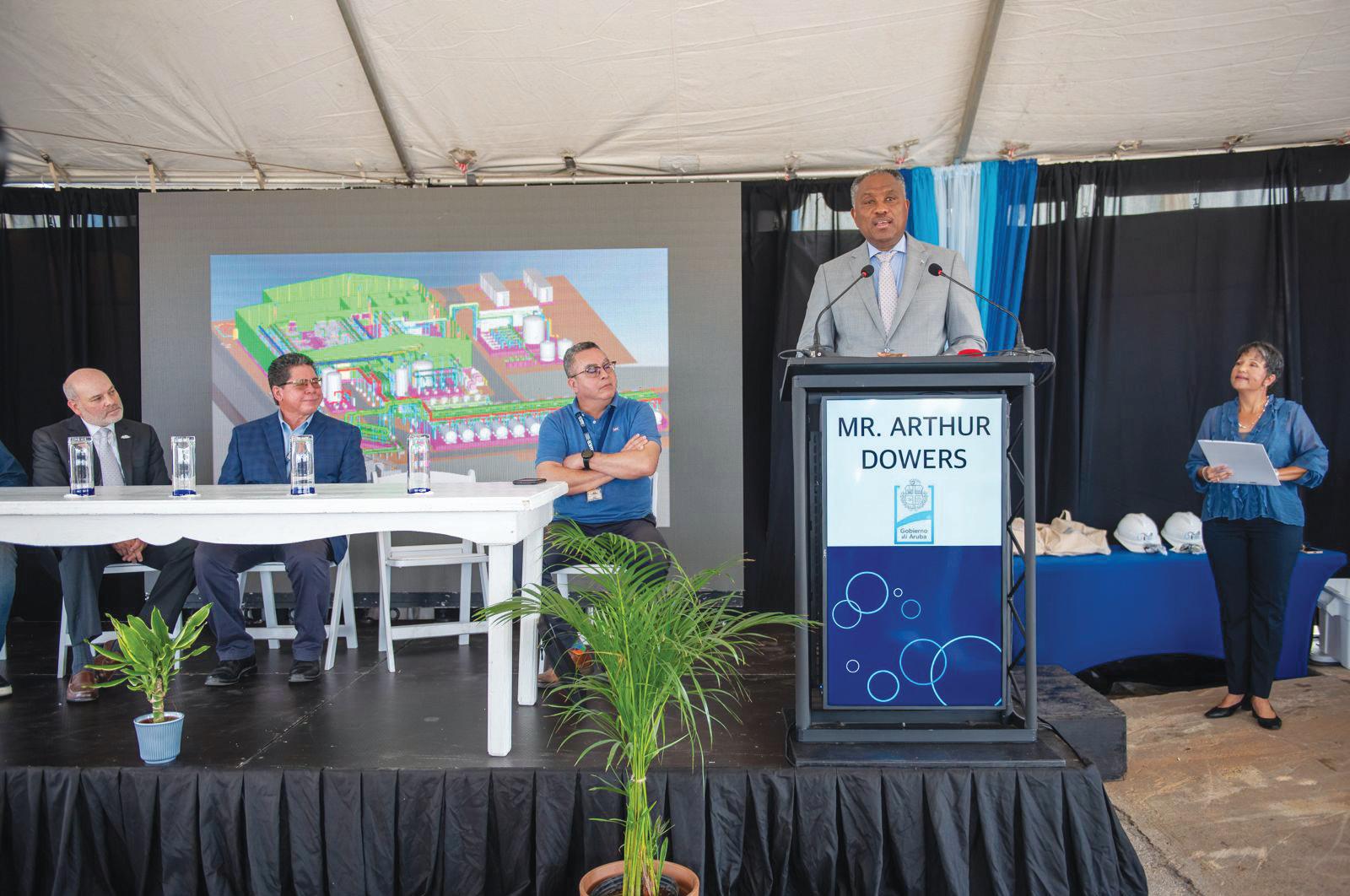 Pa e ocasion aki, Minister di Husticia y Energia mr. drs. Arthur Dowers a asisti na e groundbreaking y a duna un discurso, elogiando gerente di WEB pa e logro importante aki. Cu e SWRO-3, WEB por genera y garantisa suficiente produccion di awa pa cubri Aruba. Hunto cu Seven Seas Water Group, lo inicia cu e planta nobo aki di SWRO-3 cu lo mester keda cla pa juni 2026. Esaki ta un inversion di 10 miyon florin, pa e planta di SWRO-3 Boot y lo mester cumpli cu e demanda no solamente actual sino pa futuro tambe.
