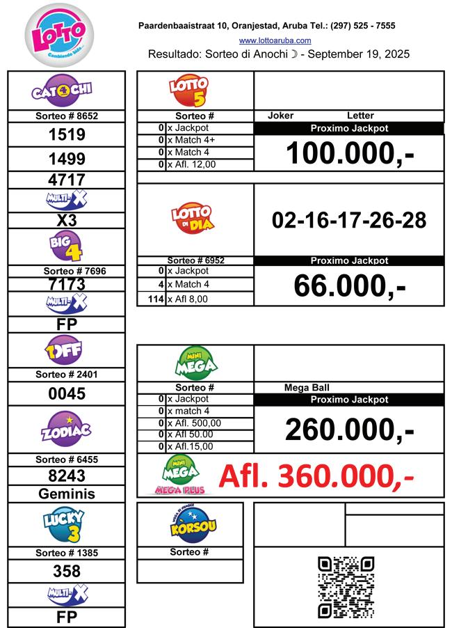 Diamars 23 september 2025 anochi di 19:00 pa 21:00.