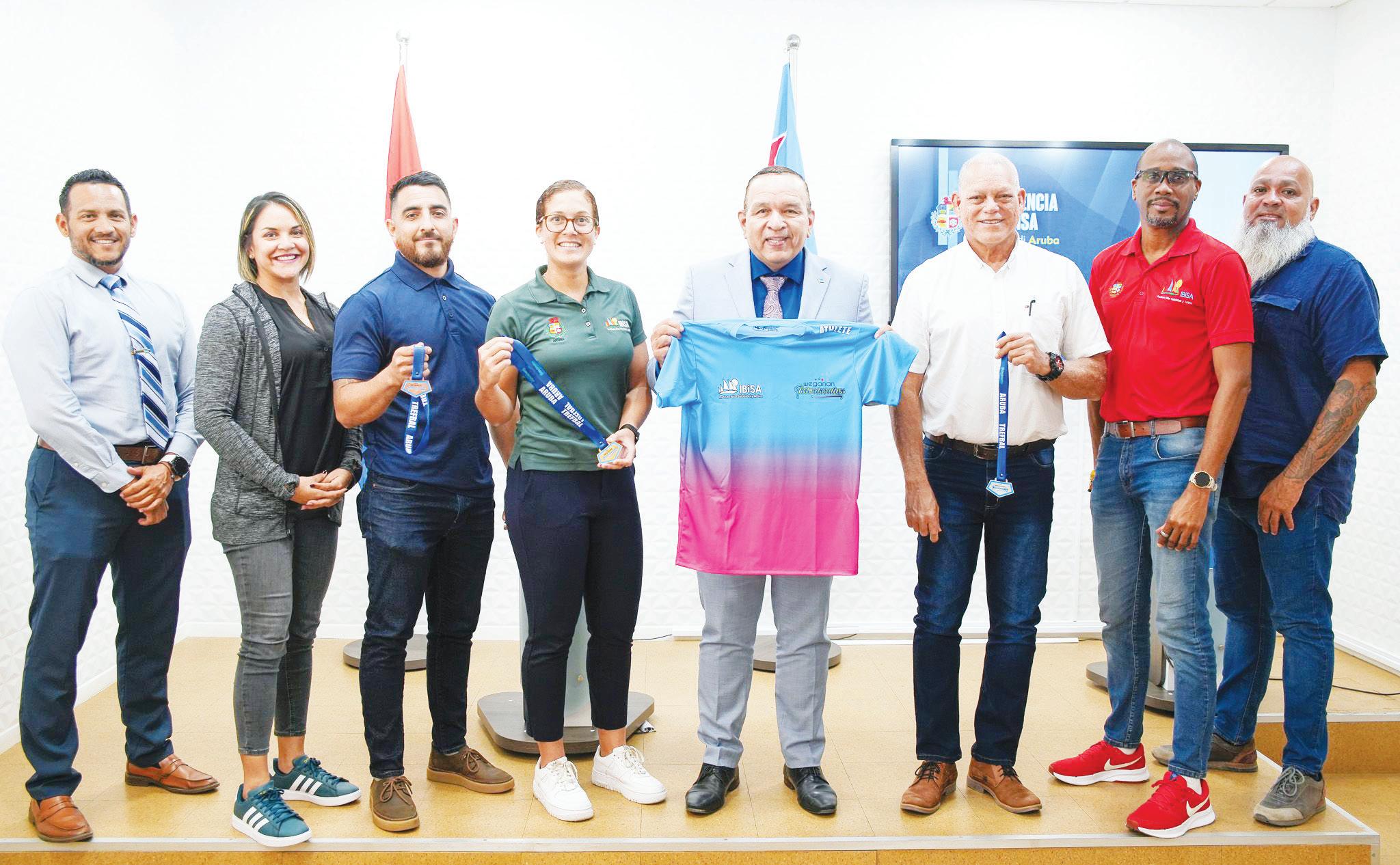 e t-shirt cu tur hoben lo ricibi y e medayanan cu lo otorga na e ganadonan. Pa finalisa, Sr. Beukenboom ta invita Pueblo di Aruba pa acudi na e weganan pa apoya nos muchanan y pa tene cuenta cu e reglanan.