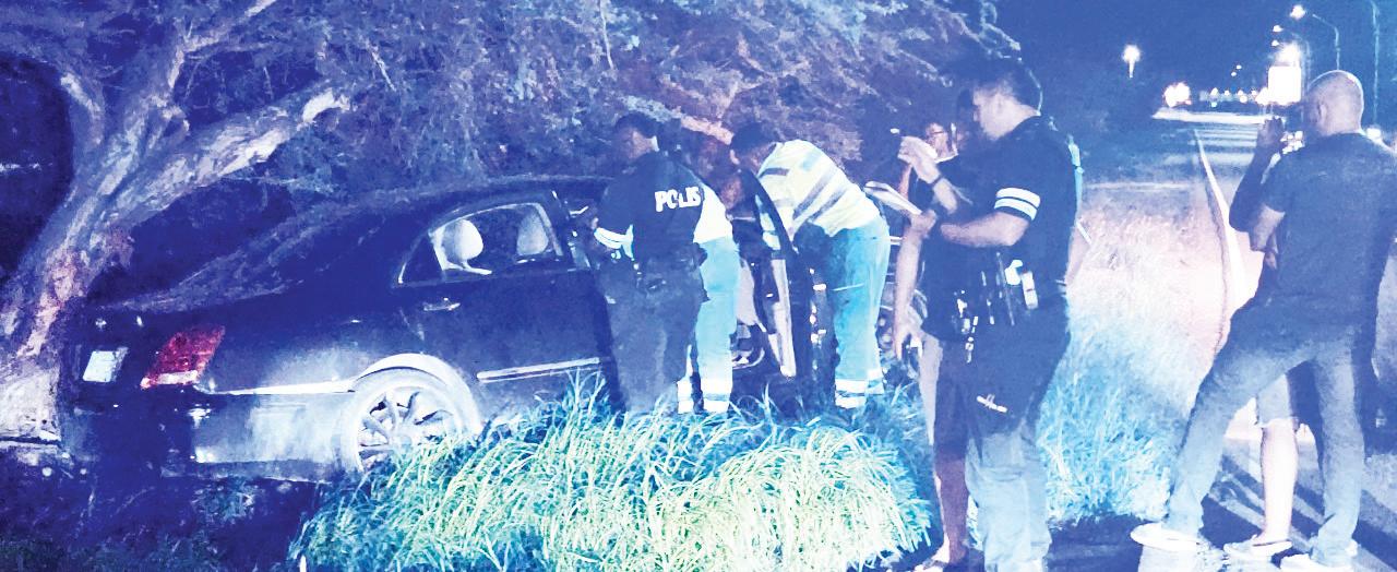 Por a mira e lastro di e vehiculo den e yerba, un posibel indicacion cu e dama a perde control ariba e auto y bay dal contra un mata.
