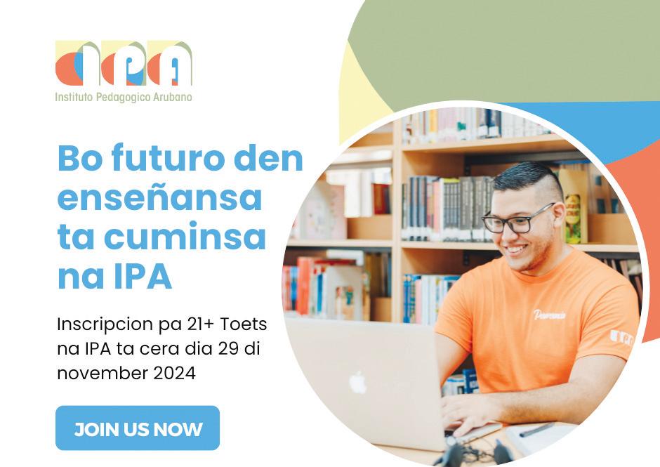 di comprobante di pago den formulario digital di inscripcion. Tene na cuenta cu e comprobante mester tin bo nomber riba dje, p’asina nos sa na ken e pago ta pertenece. Na final bo lo ricibi confirmacion di bo inscripcion. E ultimo dia pa inscribi pa 21+ Toets ta 29 di november 2024. Despues di e fecha aki no tin posibilidad mas pa inscribi. Esaki ta e oportunidad pa pone meta nobo y tuma bo futuro den bo man. Bay p’e!