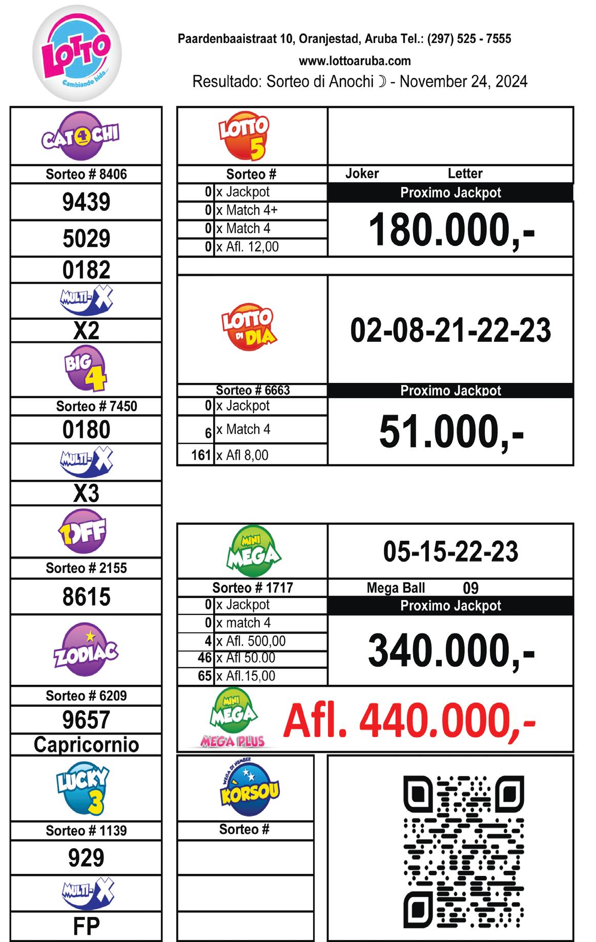 di Number di Korsou di Lotto, Lucky 3, Multi-X, Lotto di Dia, Lotto 5, Mini Mega y cu su Mega Plus y e diferente weganan di Raspa y Gana y Instacash. Tambe lo por hunga Lotto