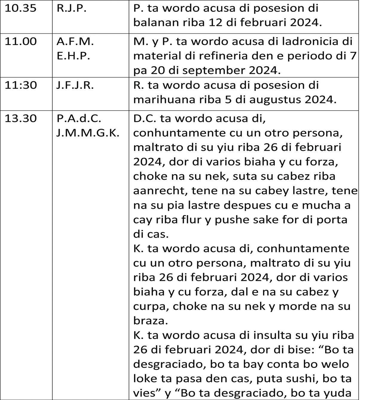 Toets ta tuma luga diasabra 1e di februari, diamars 4 di februari y diasabra 8 di februari 2025.