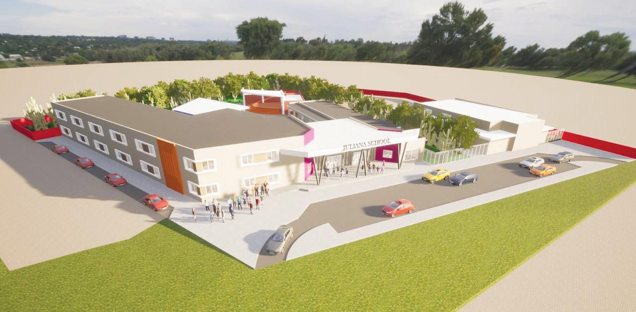 manera nan tabatin antes of un edificio nobo. E ekipo di Juliana School a opta pa un scol completamente innovativo y di e forma
