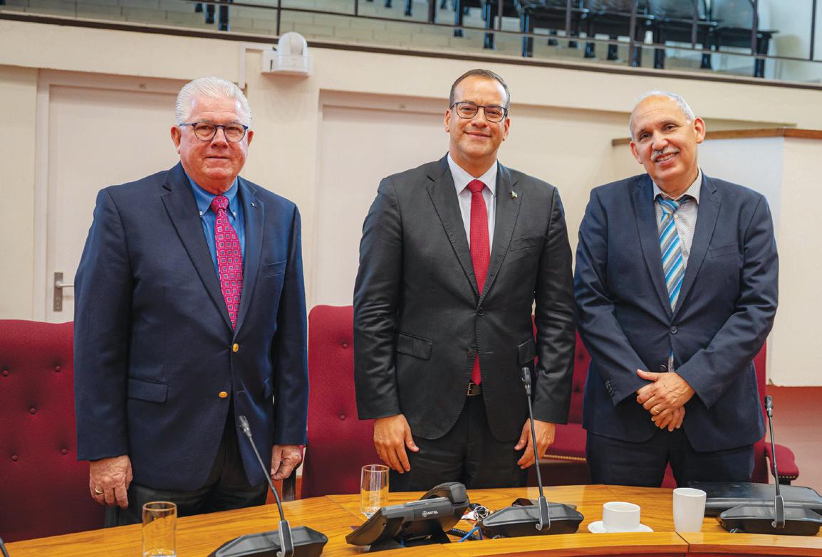 Geoffrey Wever, hunto cu director di Setar N.V., Sr. Roland Croes y Presidente di Hunta di Supervision di Setar N.V., Sr. Stephen Daal, a presenta na parlamento den un Besloten Vergadering pa asina brinda informacion y contesta preguntanan di e parlamentarionan tocante un kabel submarino nobo cu Setar ta bai construi.
