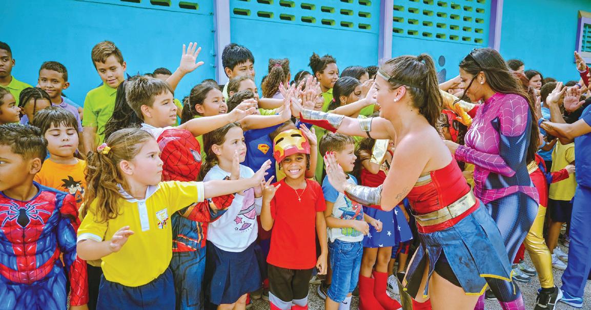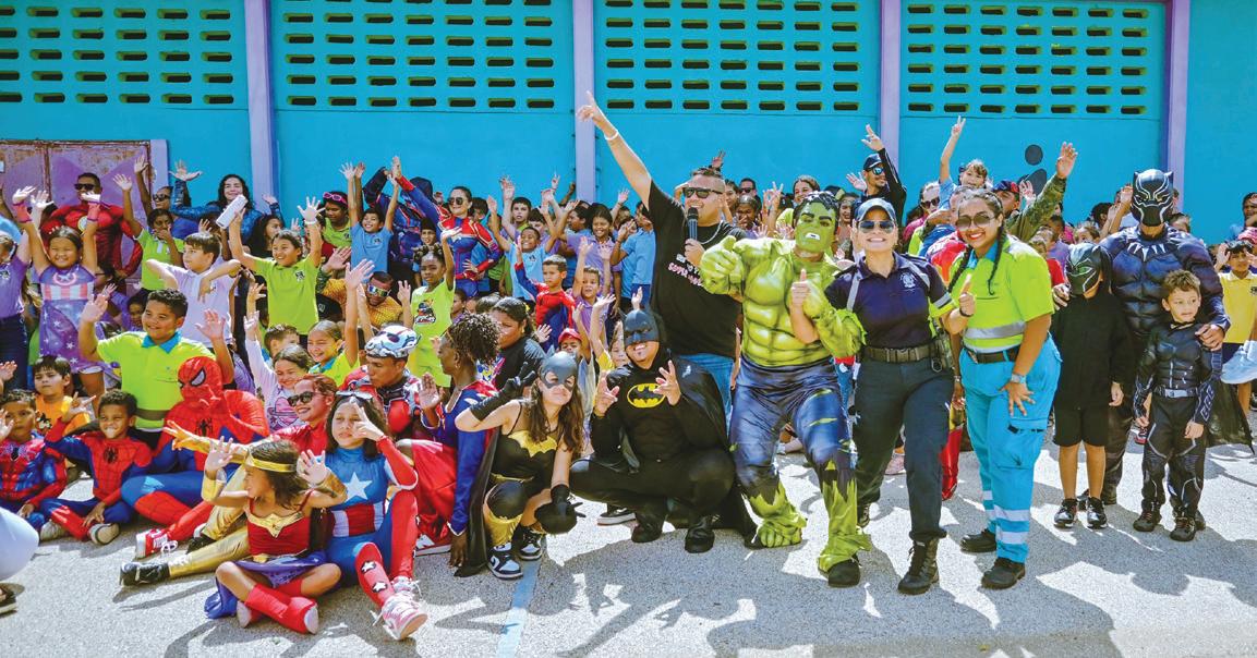 Cada aña e parada aki ta keda bira mas grandi cu e meta pa bishita scolnan rond di Aruba cu e enfoke pa recorda e muchanan cu e super heroenan tey pa proteccion di e muchanan ariba e dia internacional di derecho di mucha.