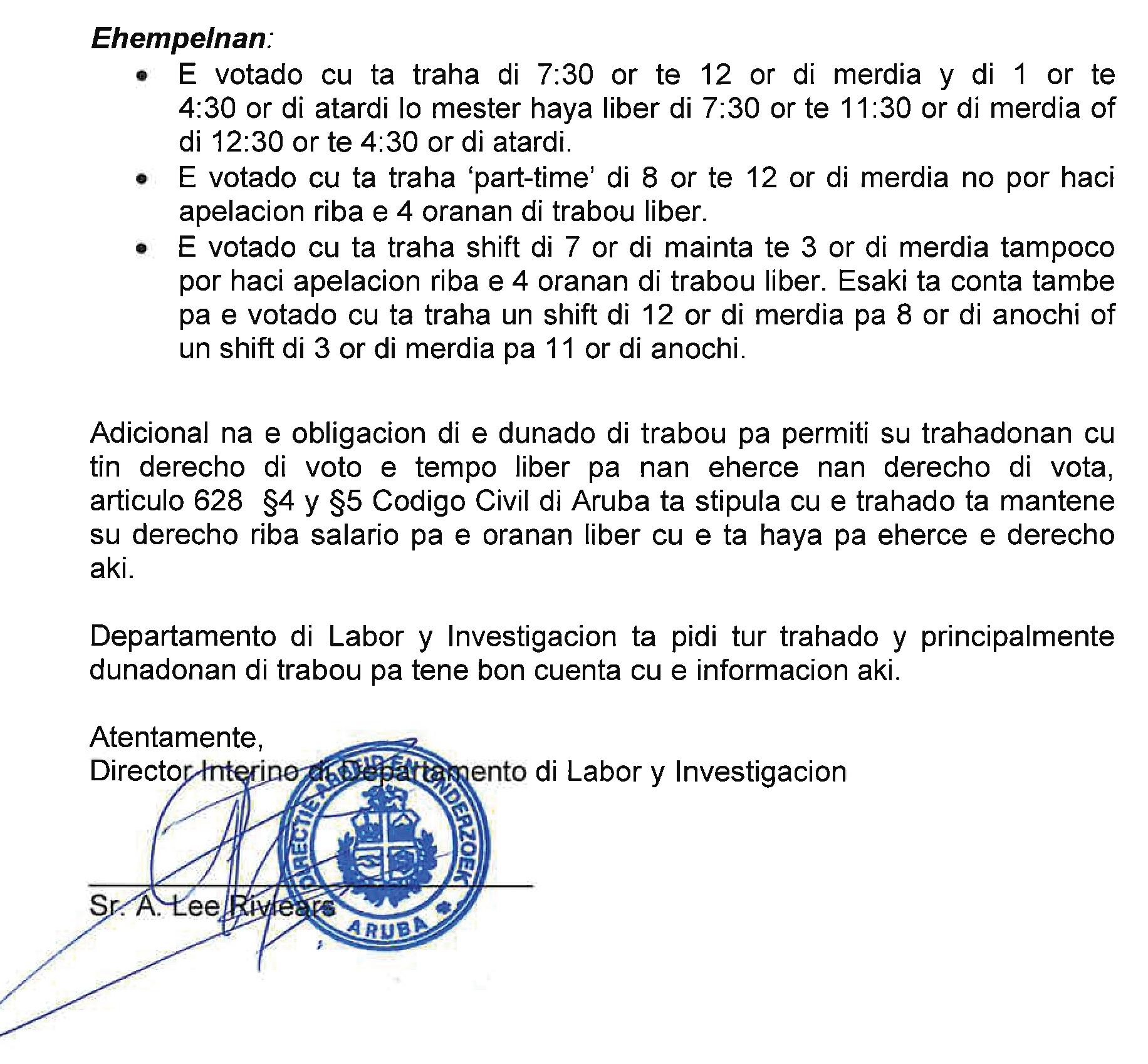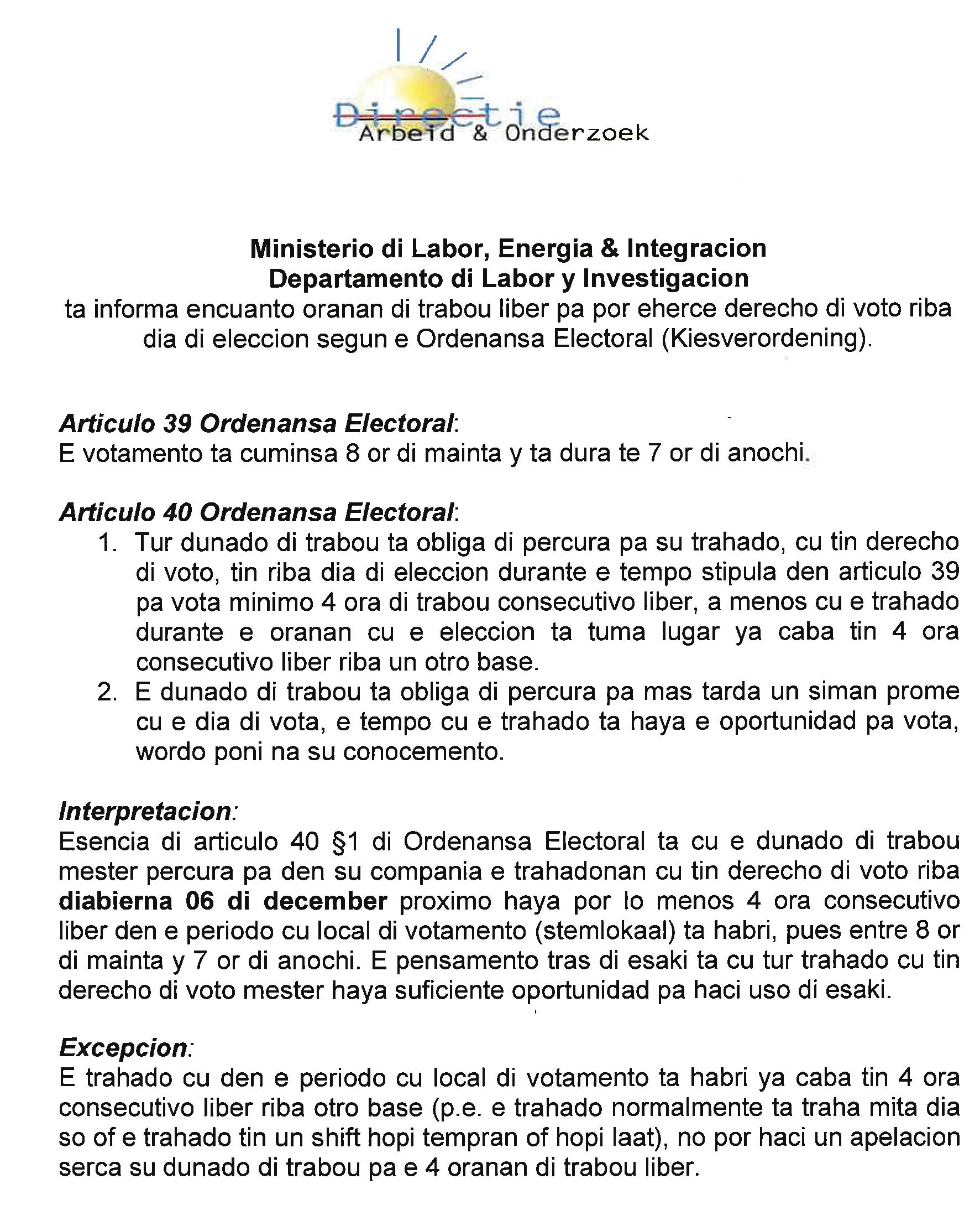 anuncionan, fecha nan y guia relevante pa e eleccion di Aruba.
