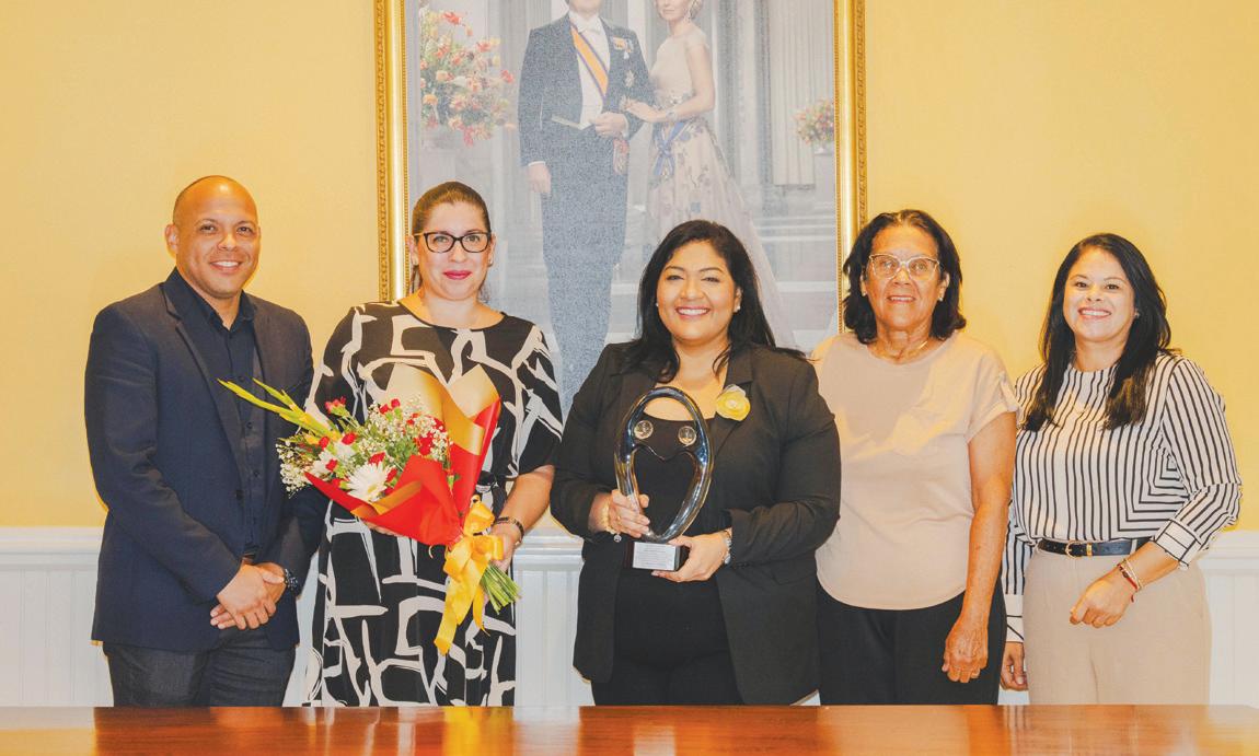 Minister Maduro a gradici Ray-Anne pa tur e añanan di bon cooperacion cu e sector cultural y tambe cu Ministerio di Cultura pa hiba acabo celebracionnan nacional y proyectonan na bienestar di arte y cultura na Aruba. Pa e ocasion special aki, Minister Maduro a regala Ray-Anne un obra di arte chikito cu ta simbolisa su amor y compromiso cu e cultura di Aruba.