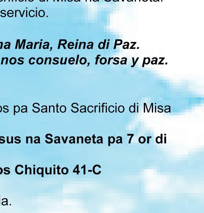 completo y total. Un temporada cu tur e maldad aki mester wordo elimina, un liberacion completo pa asina nos por merece atrobe di disfruta di e Bondad di Dios y e bunitesa di e Creacion di Dios. Pa solo briya di nobo manera Dios Tata a priminti nos. Evangelio di e dianan aki ta referi na fin di tempo. Caba cu maldad pa prepara nos pa e binida di nos Felicidad. Bunita ta cu na fin di cuenta: lo briya un claridad inmenso den tur cas, pueblo y nacion na mundo, NOS Fe ta recupera.