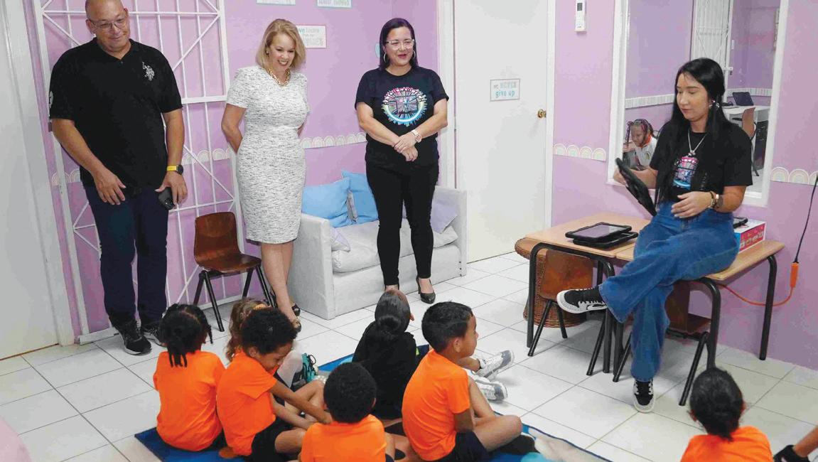 Prome Minister Evelyn Wever-Croes a bishita Trupial Kleuterschool na Santa Cruz pa conoce e proyecto y mira e premionan cu e scol a gana a traves di EduTech, cual ta 15 Chromebook/Laptop y 15 Tablet.
