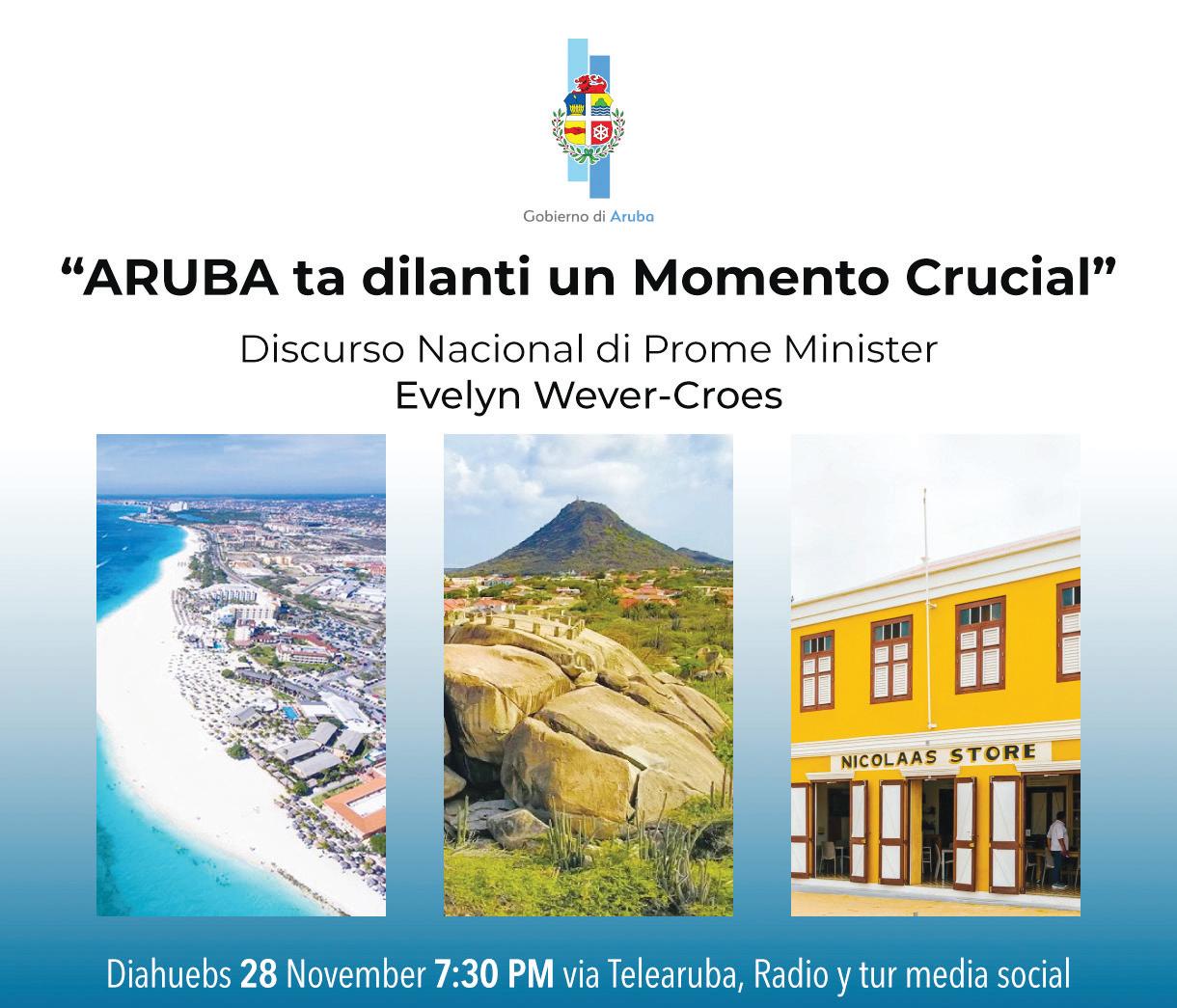 Ricibi un saludo cordial y danki pa permiti mi comparti e mensahe aki cu bo y bo famia awe nochi. Aruba ta riba un rumbo firme di recuperacion y progreso. Y ta importante pa comparti informacionnan mas actual.