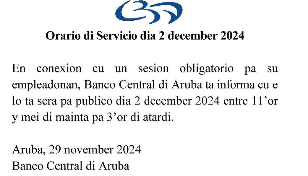 Otro siman diabierna dia 6 di december nos pais ta bayendo urnanan electoral, pa scoge nos parlamentarionan nobo, y asina haya un gobierno nobo pa e periodo di 2025 pa 2028. Ta importante pa enfatisa cu den e añanan nos dilanti, pais Aruba mester sigui mantene su mes na e disciplina financiero, pasobra sin finansas, bo no por haci mucho.